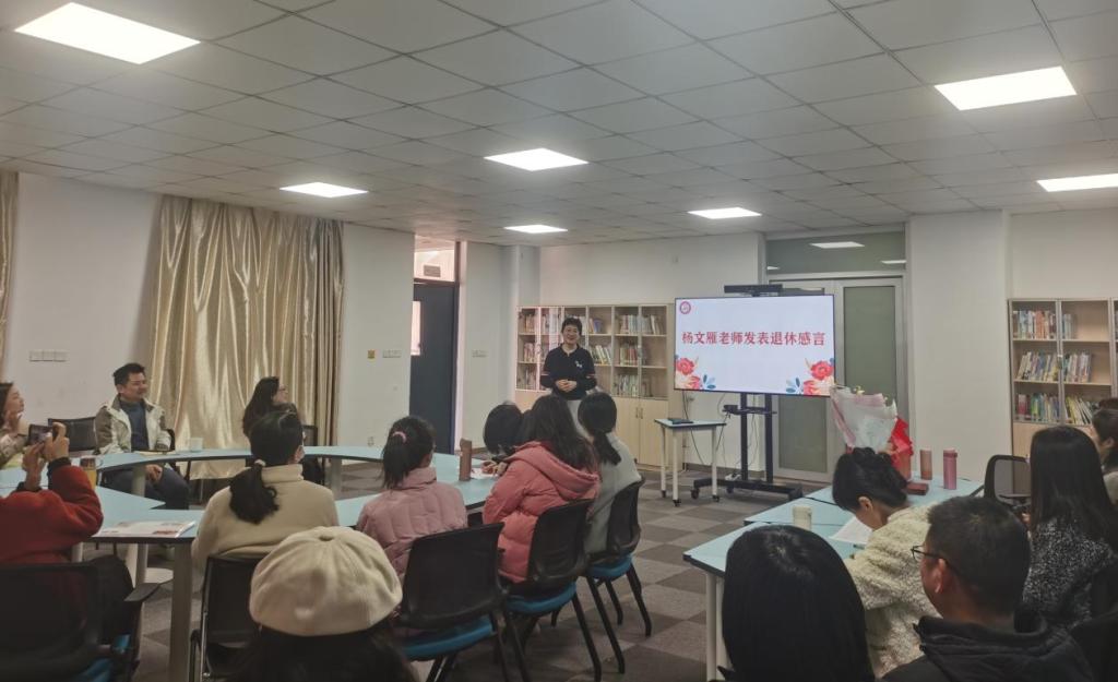 ▎人文学院以庄重温馨的仪式,为吴水英老师举行退休欢送会。学院领导、教师代表共同回望吴老师深耕语言教育一线的育人岁月,高度赞扬其严谨治学、潜心教学、无私奉献的教育情怀,现场敬意满满、温情四溢。教师代表为吴老师献上鲜花与纪念品,送上最真挚的祝福。